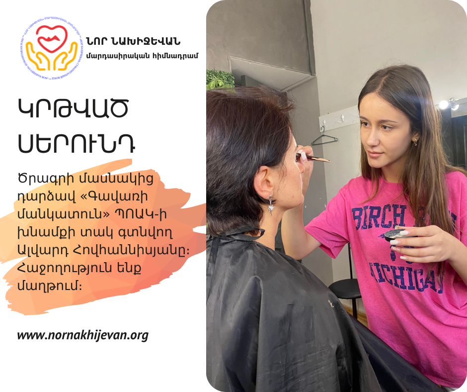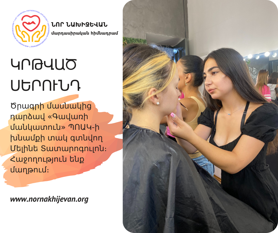 Ծրագրի հերթական փուլում հիմնադրամի ուշադրության կենտրոնում էին խնամքի հաստատությունների սաները: Հայաստանի աշխատանքի և սոցիալական հարցերի նախարարության հետ համագործակցության շրջանակում «Գավառի մանկատուն» ՊՈԱԿ-ի երկու սաներ՝ Ալվարդ Հովհաննիսյանը և Մելինե Տատարոգուլոն, հաջողությամբ ավարտեցին դիմահարդարման մասնագիտական դասընթացը: Այս գործնական հմտությունների ձեռքբերումը կարևոր քայլ է աղջիկների համար՝ ինքնուրույն կյանք մտնելու և աշխատաշուկայում իրենց տեղը գտնելու ճանապարհին: